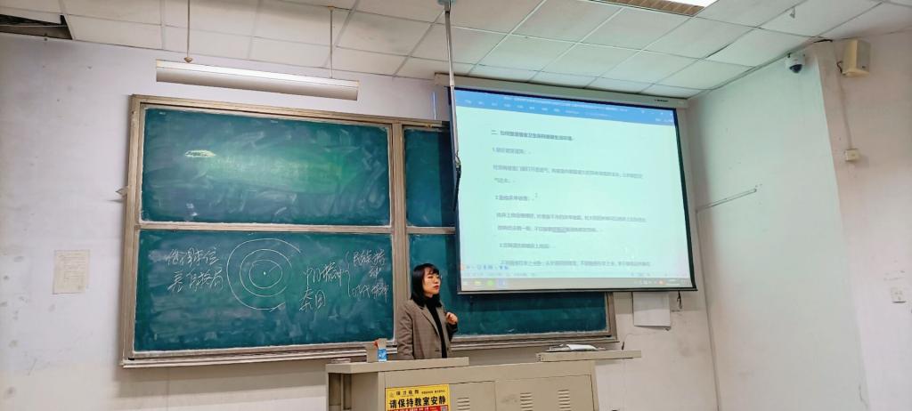 首先,付凯从日常安全、宿舍安全、信息安全、人身财产安全和网络安全五大方面,通过列举相关案例,让同学们认识到“埋伏”在身边的安全隐患,教育同学们时刻敲响安全警钟,提高安全防范意识。