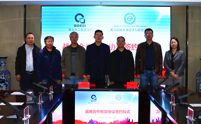 城市可持续发展研究中心主任雷仲敏,青岛市工程咨询院院长张云峰、总工程师黄文清、政策规划部主任李佳林、政策规划部主任助理章程等出席并见证了签约。