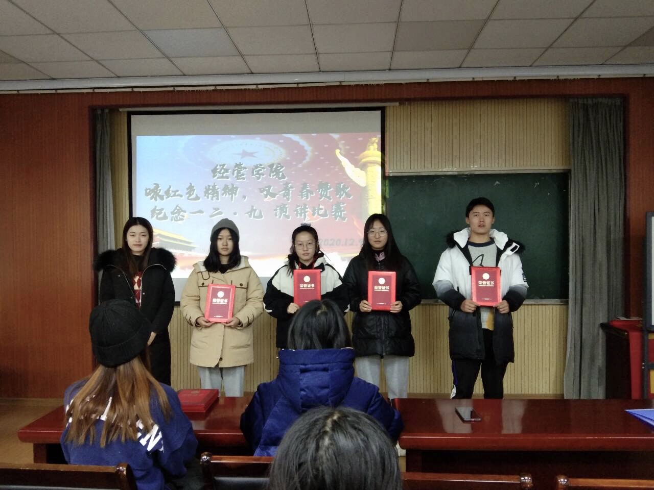 精心策划,开展“回溯历史勇担使命,‘经’心筑梦向光而行”纪念“一二·九”系列活动,引导学生传承红色基因,坚定红色信仰。