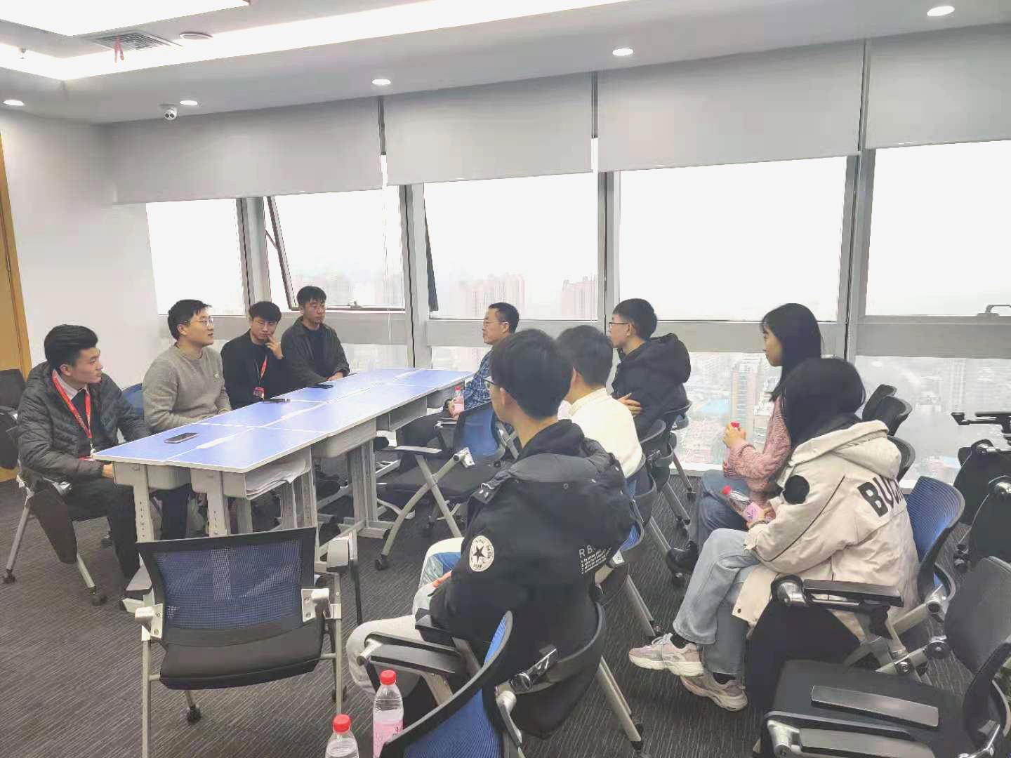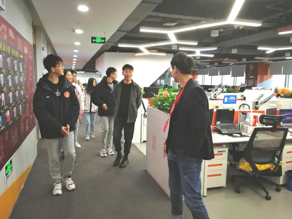 由学而思网校渠道负责人金振剑及其他部门主管带领于龙振及学生代表参观公司,对济南分公司的若干楼层进行详细介绍。