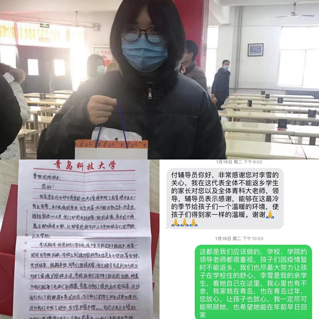 还为留校学生精心准备包含新年大礼包、防疫物资、新年贺卡等春节慰问品,切实为学生提供身心双重保障。来自河北邢台南宫的2020级留校学生李雪,专门写了一封感谢信,表达了自己对7mmtv