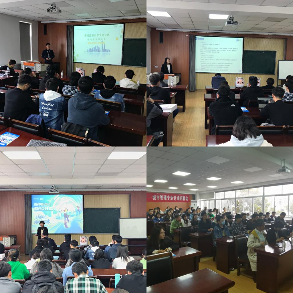 招聘会邀请到了山东正衡土地房地产评估勘测有限公司、新城控股集团与融创中国控股有限公司三家企业现场宣讲。在场企业首先介绍了公司规模现状、主营业务、发展潜质及具体岗位需求,并现场进行沟通交流,解答同学们对于岗位的相关问题。同学们积极沟通交流,现场气氛热烈。