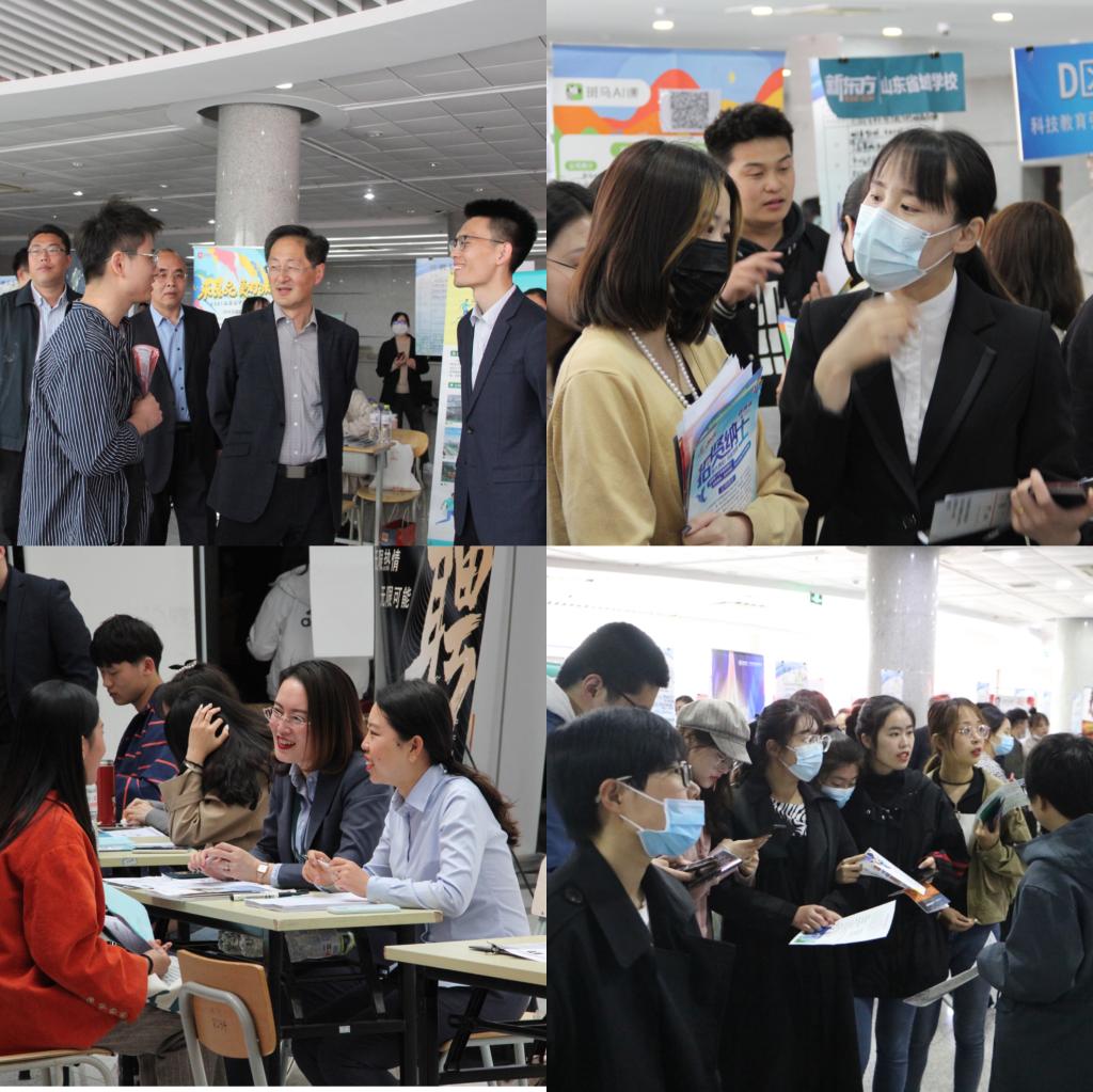 崂山校区图书馆二楼大厅成功举办。校党委常委、副校长丁林莅临现场指导工作,深入现场和企业面对面沟通交流。
