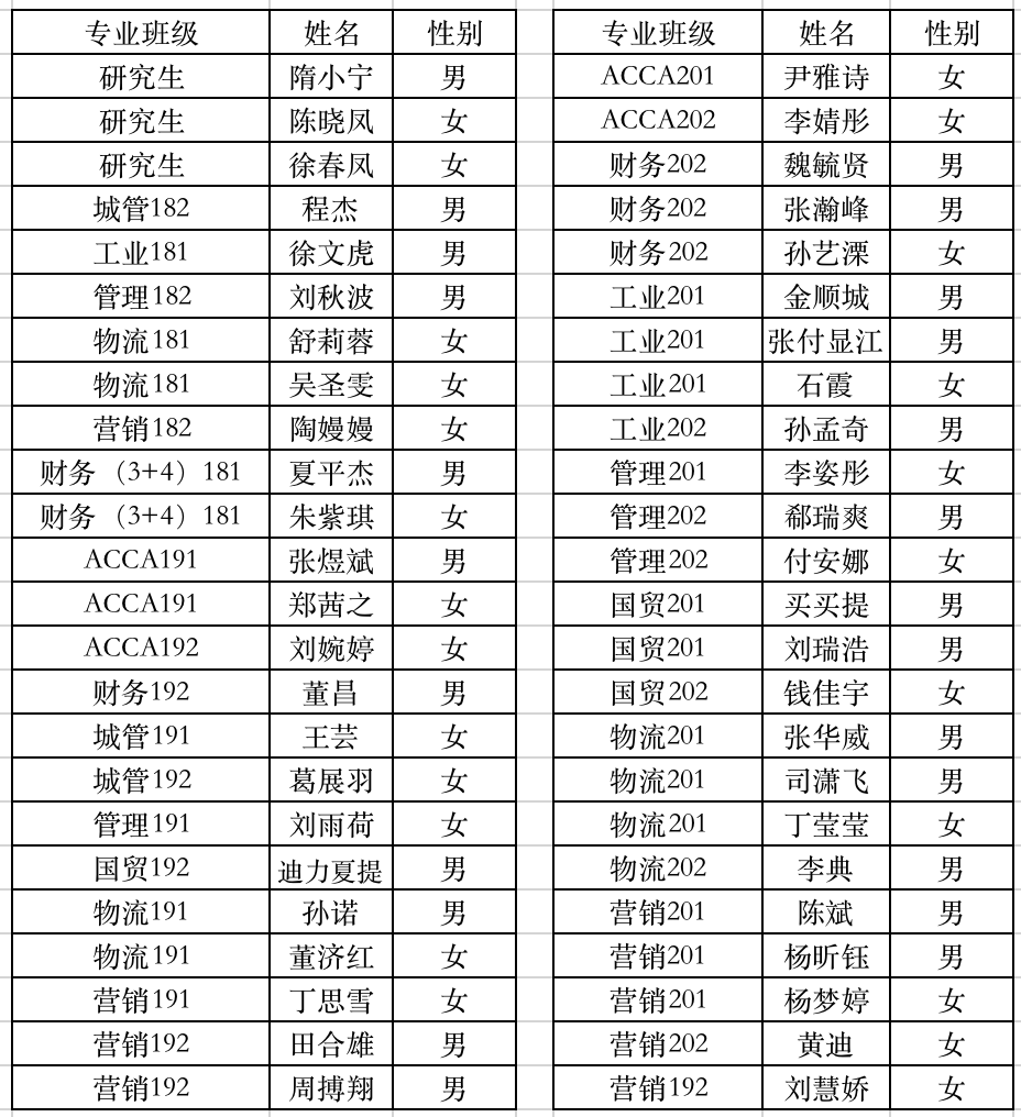 田径队名单: