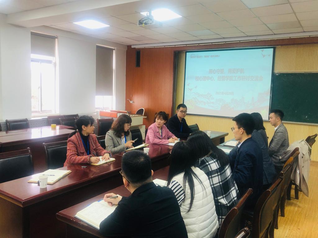 工作研讨交流会在经管楼419举行,学生处副处长王丽出席会议,心理中心主任李海玲,心理中心魏玉杰、王岳飞,7mmtv