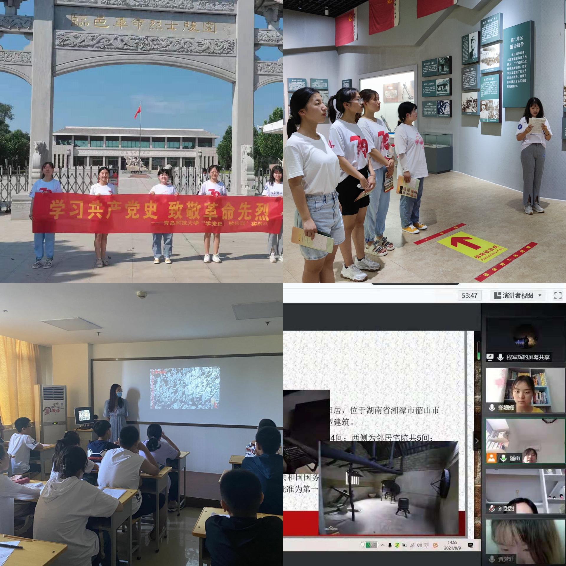 立足实际,积极用好地方红色教育“活教材”,探索党史学习教育“新模式”,引导广大青年学生学习党的百年奋斗历史,厚植爱党、爱国、爱社会主义情感,感悟党的初心使命、读懂党的精神谱系、传承党的红色基因。”赴山东省德州市‘学党史,敬先烈’党史学习教育实践团“来到高渡村党支部和临邑革命烈士陵园,通过重走革命故地,学习英烈事迹感悟党史内涵,锤炼精神品质;”赴湖南省湘潭市‘追忆·红色足迹,调研实践团“来到韶山毛泽东故居,学习毛泽东同志成长历程和带领广大中国人民站起来的革命经历,感悟一代伟人的雄伟胸襟和丰功伟绩。