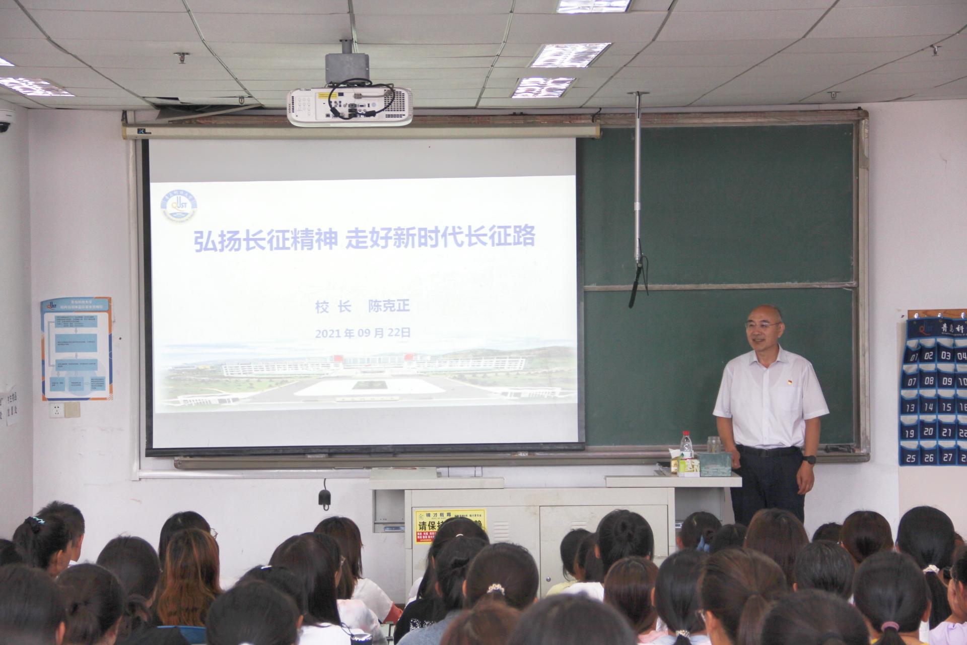 9月22日下午,校长陈克正走进学生课堂,以“弘扬长征精神 走好新时代长征路”为主题,为7mmtv