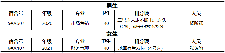 不合格宿舍情况如下: