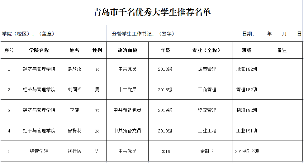 “青岛市千名优秀大学生”候选人公示如下,公示时间2022年4月4日-2022年4月6日。