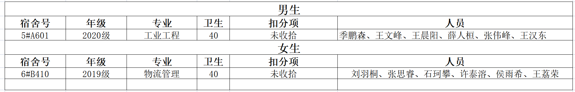 不合格宿舍如下: