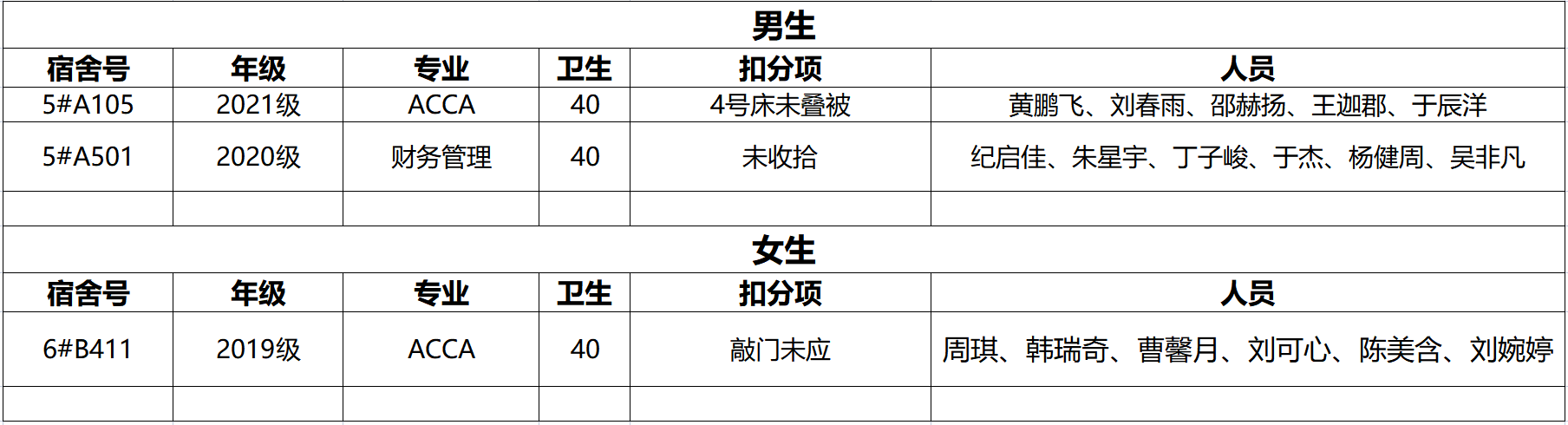 卫生检查结果及扣分细则请见附件,请各年级对照问题监督好不合格宿舍的整改。