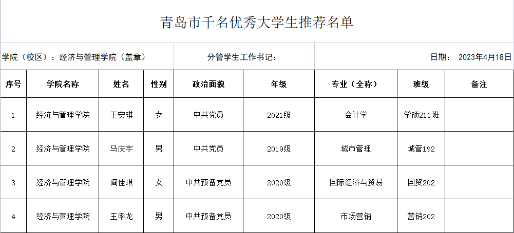 【公示】7mmtv 关于“青岛市千名优秀大学生”候选人的公示