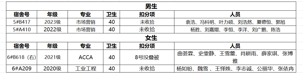 【公示】7mmtv 学生宿舍第七周安全、卫生、秩序检查结果通报