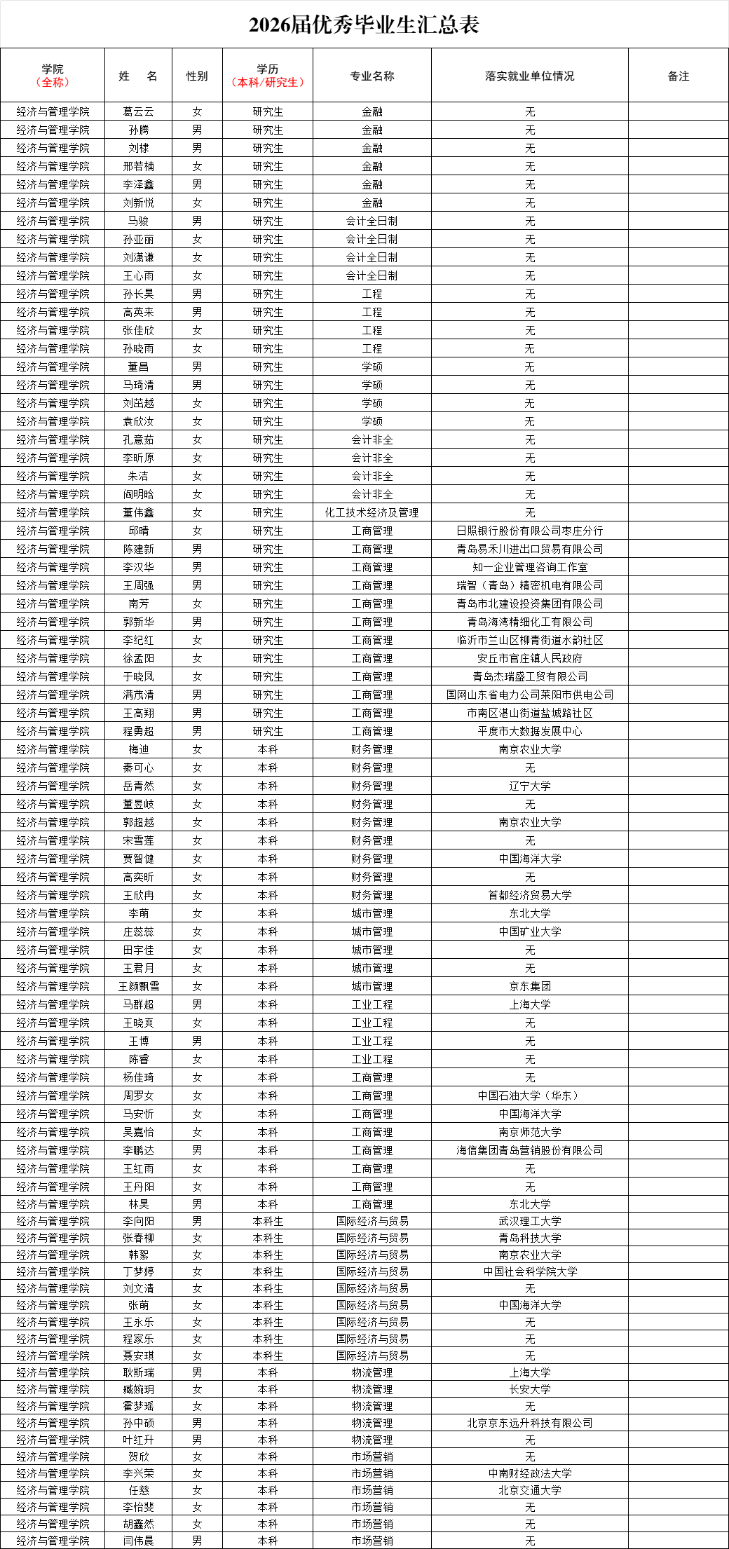 在综合测评和民主评议的基础上,按照公开、公正、择优的原则,按规定名额确定2026届优秀毕业生人员名单,现予以公示,公示期3个工作日。公示时间:2025年12月12日-2025年12月16日。