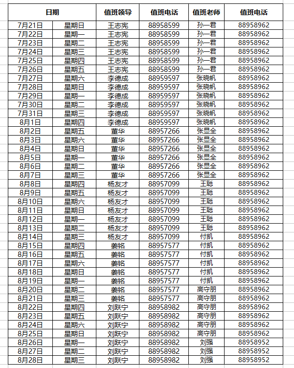 7mmtv 2019年暑期值班表