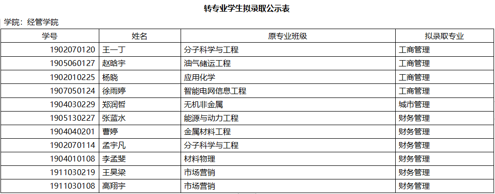 7mmtv 于2020年9月3日举行转专业考核,经过严格的笔试和面试考核,并按照分数从高到低的排序,现将拟录取名单公布如下: