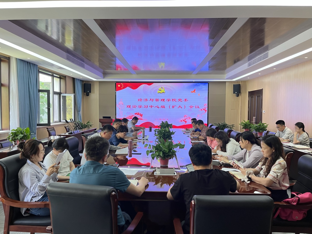 党委理论学习中心组于经管楼313会议室召开扩大会议,党委理论学习中心组成员、全体党支部书记参与学习,会议由党委书记李德成主持。