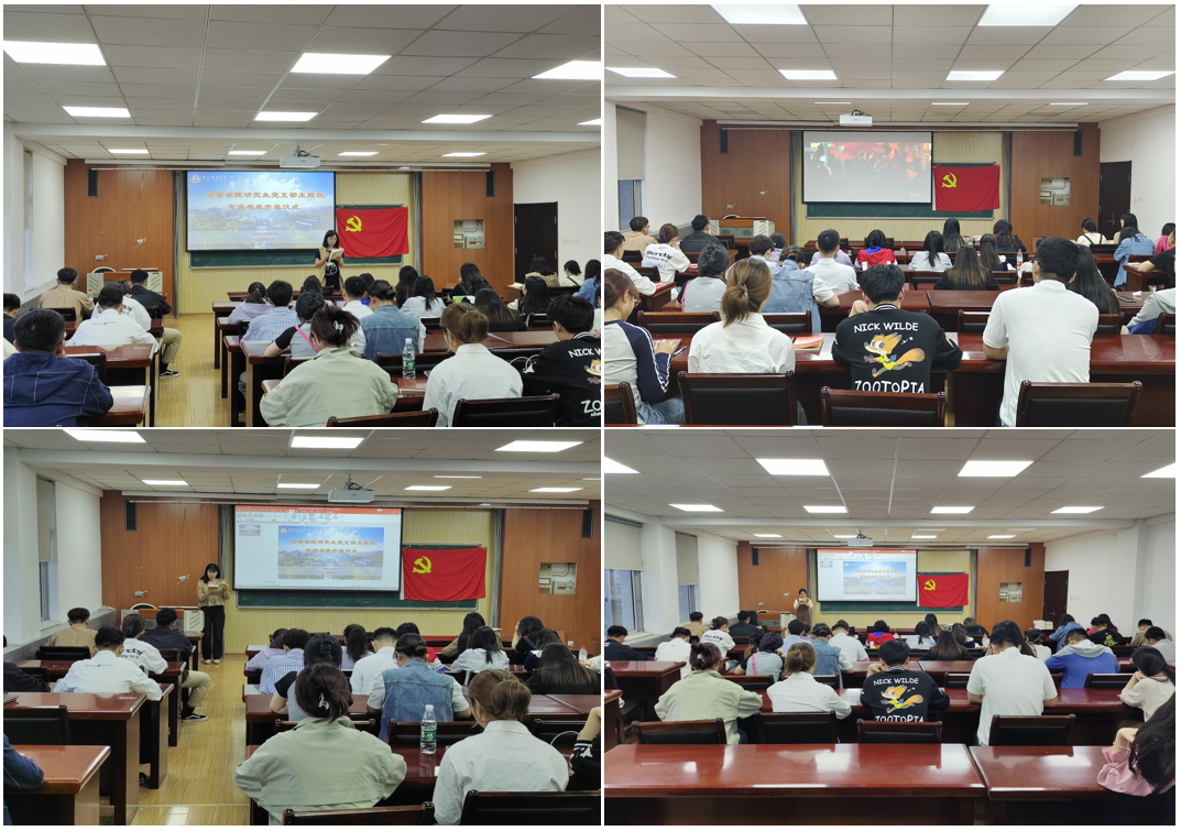 全体党员学习领会习近平总书记给中国农业大学科技小院学生的回信精神研究生第一党支部书记王聪领学《习近平著作选读(第一卷)》中的文章《实现中华民族伟大复兴是中华民族近代以来最伟大的梦想》和《党必须勇于自我革命》。研究生党员代表乔娇、何珊珊、荣元昊领学《习近平著作选读(第二卷)》中的文章《重整行装再出发,以永远在路上的执着把全面从严治党引向深入》、《新征程是充满光荣和梦想的远征》、《中华民族共同体意识是民族团结之本》。