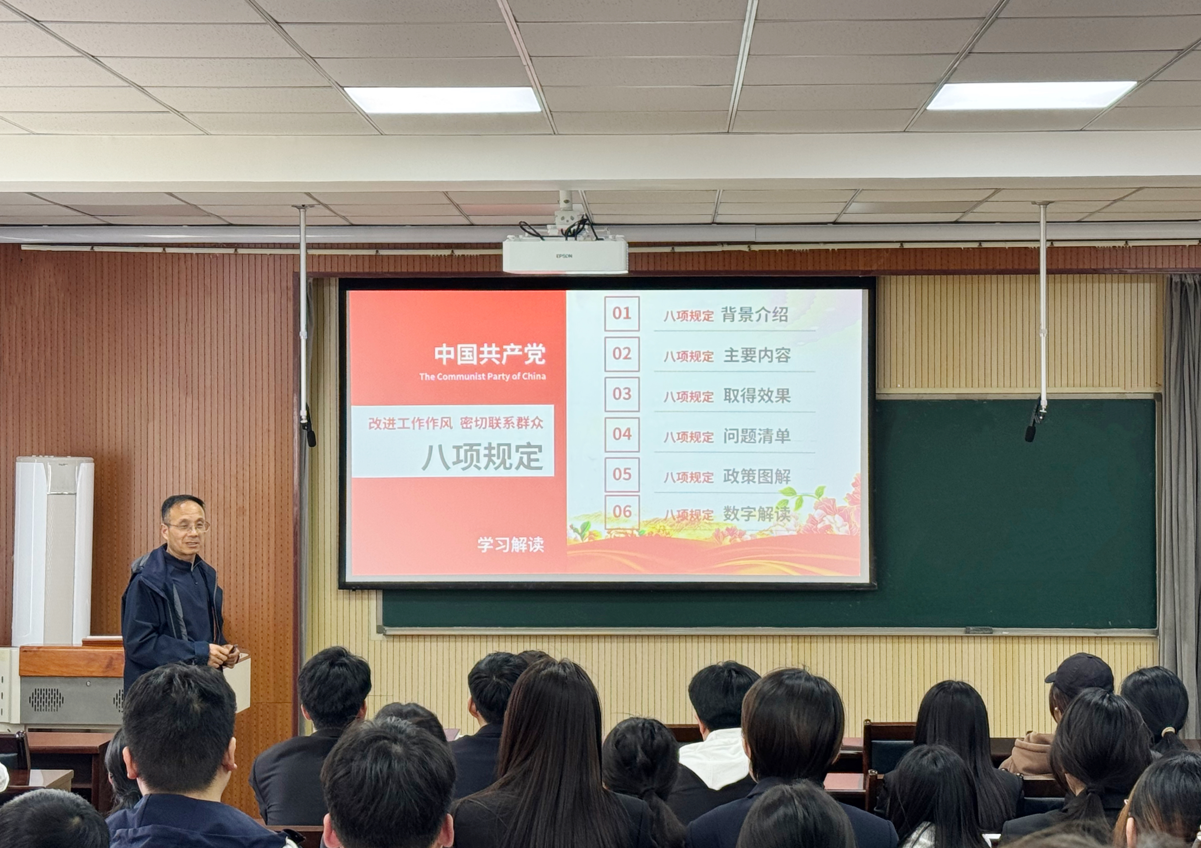 党委书记李勋来为春季学期新发展入党积极分子和发展对象讲授“深入学习贯彻中央八项规定精神”学习教育专题党课,扣好入党的“第一粒扣子”。