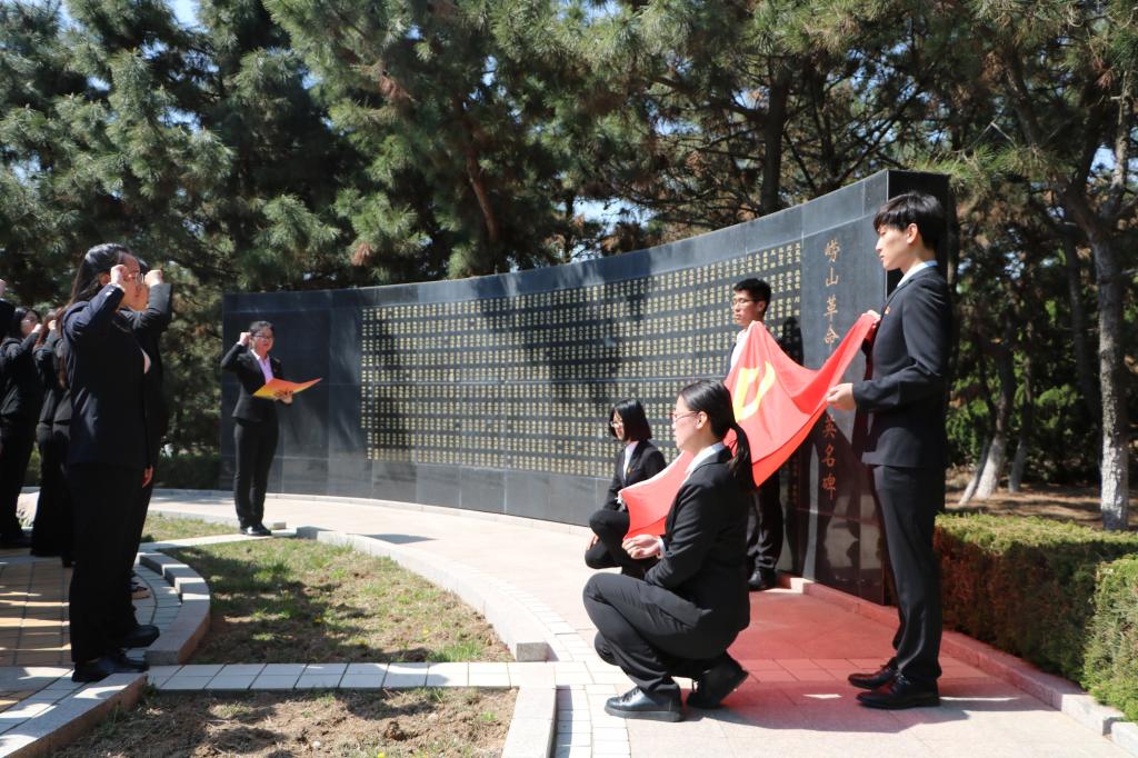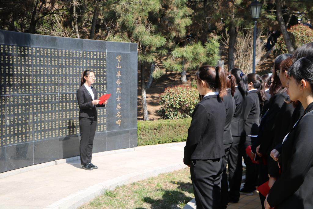 学生党支部于崂山烈士陵园开展党建活动,校团委副书记张玉老师出席,活动由国贸161班陈永洁主持。