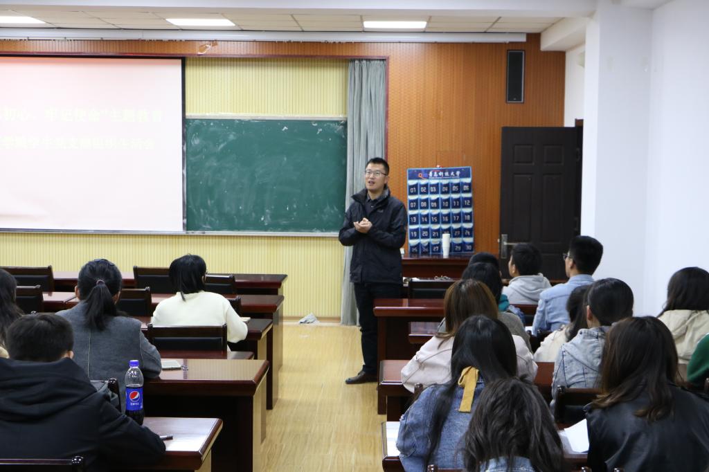 学生党支部于经管楼419室开展了“不忘初心、牢记使命”主题教育组织生活会。党总支书记李德成,党总支副书记、副院长刘跃宁,19级辅导员孙一君及全体学生党员参加了本次会议,会议由孙一君主持。