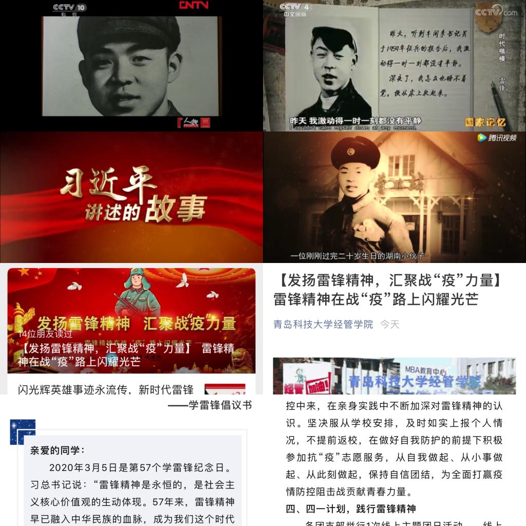 学生党支部在线上举行了特别的主题党日活动,全体学生党员一起“云学习”雷锋纪录片、重读雷锋日记,观看《2019感动中国十大人物》,并针对新时代的雷锋精神展开分享交流。16级党员苏展波说:“今年这个纪念日太过特别,尽管疫情防控形势发生了积极变化,但战“疫”未止,每个人都在用各自的方式为防控疫情努力着。雷锋,曾给我们种下过一颗叫做“奉献”的种子,如今这颗种子长成了千万棵为民遮风避雨的大树。作为新时代青年,我们既要学习雷锋的精神,也要学习雷锋的做法,把雷锋精神代代传承下去。”