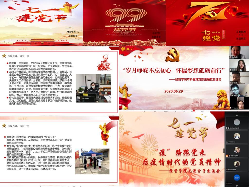 党委高度重视,积极组织,教工党支部、学生党支部以“给党员过政治生日”“红色朗读者”等特色活动向党的生日献礼,带领全体经管师生在“七一”云端集合,举办“‘疫’路跟党走——后疫情时代背景下的党员精神”党员骨干交流会,深刻研学疫情期间习近平总书记系列重要讲话精神,党员代表对“如何做一名优秀中共党员”“为党奋斗终身”等主题的发言引起大家的热烈反响,同时就如何增强新时代广大青年的责任感和使命感展开了讨论,大家纷纷表示:“在这个千帆竞发、百舸争流的时代,青年党员要不断释放信仰的力量,推动中国号巨轮劈波斩浪,开创更加美好的未来。”