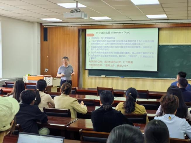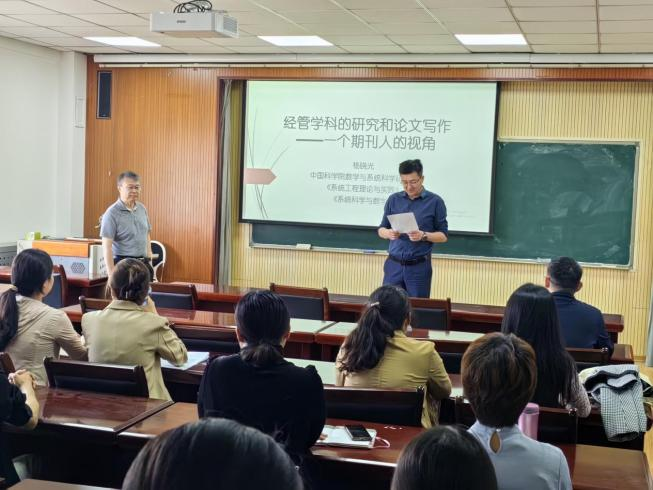 邀请国家自然科学基金委A类期刊《系统工程理论与实践》的主编杨晓光老师,为全院师生带来了一场题为“经管学科的研究和论文撰写:一个期刊人的视角”的专题讲座。杨主编结合自己丰富的期刊工作经验,强调了科技论文撰写的规范性对于提升研究水平、推动学术进步具有重要意义。随后,他结合具体案例,分析了优秀科技论文的特点和撰写技巧。杨主编鼓励师生在研究中勇于探索、敢于创新,在撰写中注重细节、精益求精。此次讲座不仅让师生们掌握了科技论文撰写的规范和要求,还激发了大家对科研工作的热情和信心。