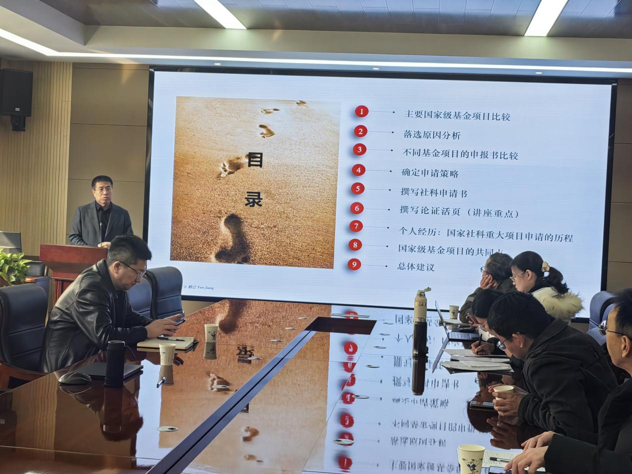 院长吕承超教授主持,东北财经学教授、博士生导师韵江教授主讲。本次论坛的主题为:国家级课题申请经验分享。