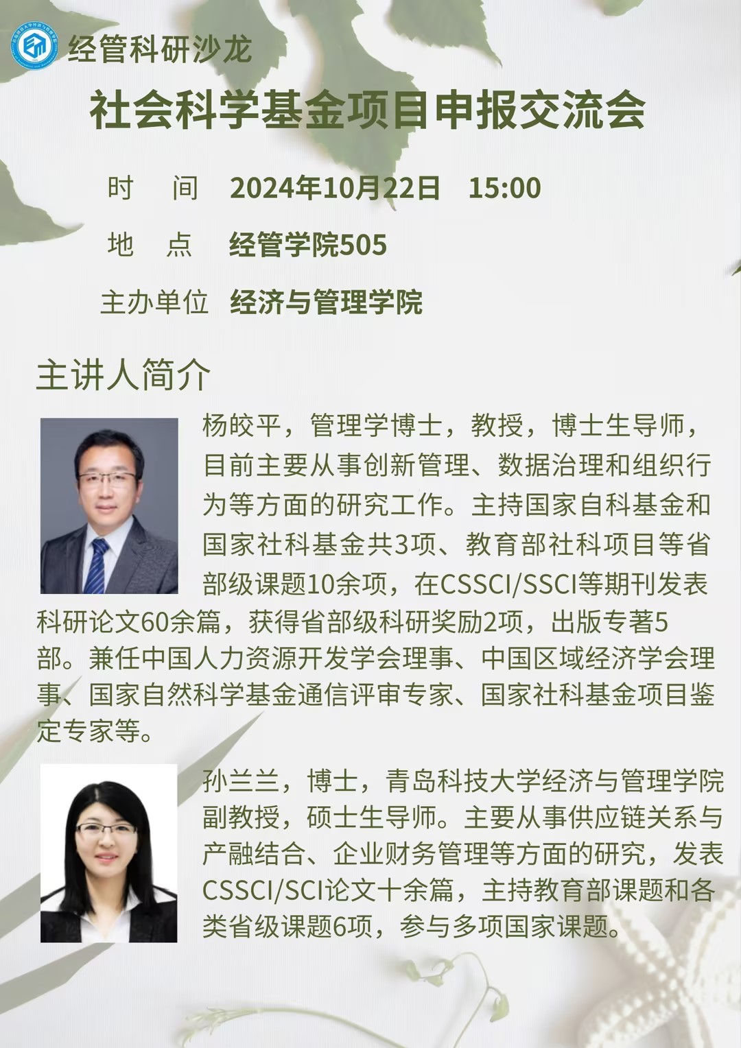 社会科学基金项目申报交流会-杨皎平,孙兰兰