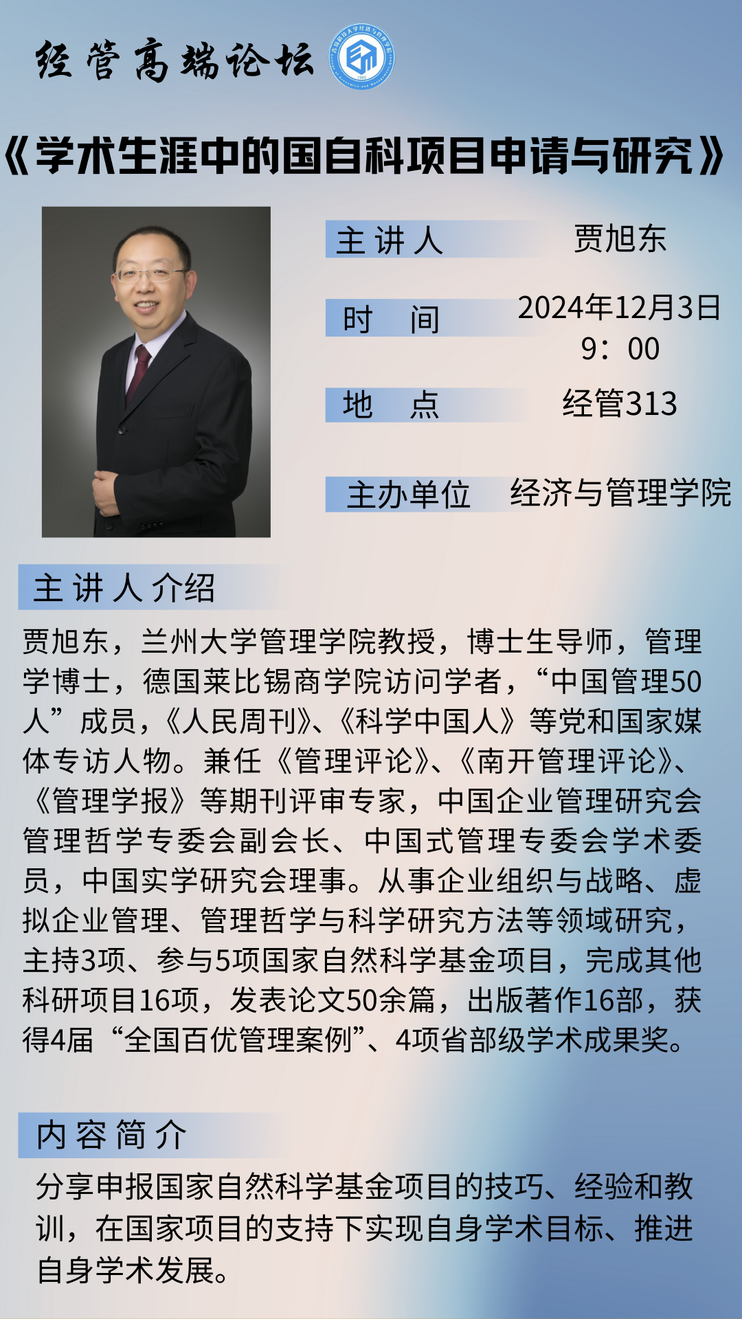 学术生涯中的国自科项目申请与研究--贾旭东