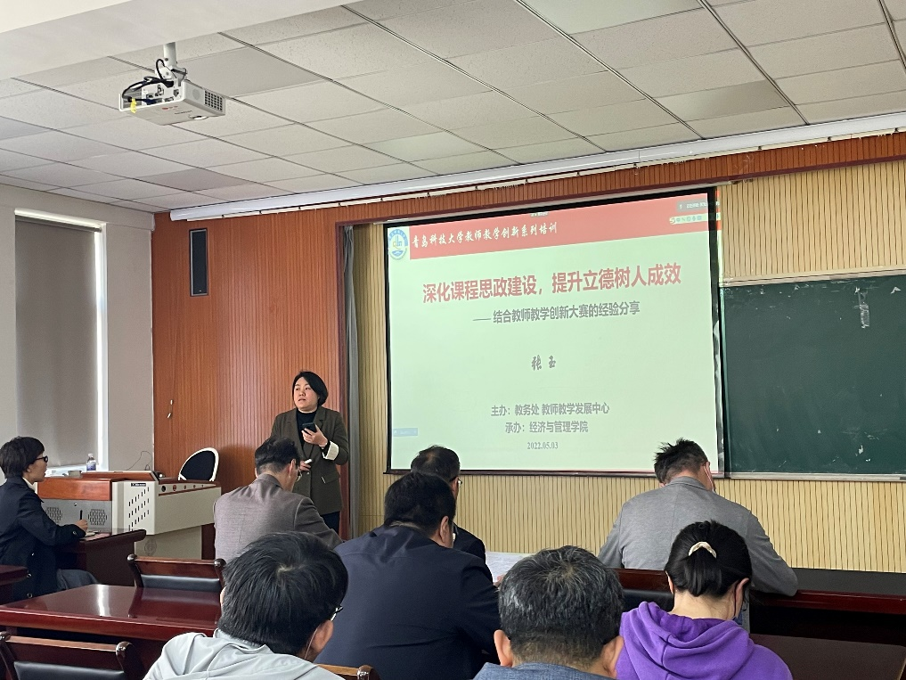 为发挥优秀教师的示范带动作用,推动教师理念创新、方法创新和模式创新,深入推进7mmtv 课程思政建设,推广课程思政建设的经验。5月3日,由7mmtv 教务处主办,7mmtv 承办的以深化课程思政建设,提升立德树人成效为主题的教学创新大赛经验分享会在7mmtv 419召开,活动邀请山东省一流课程负责人校级思政名师2022年度7mmtv 教师教学创新大赛一等奖获得者张玉进行经验分享及交流,全院教师及其他7mmtv 部分代表参会。分享会由7mmtv 院长李勋来主持