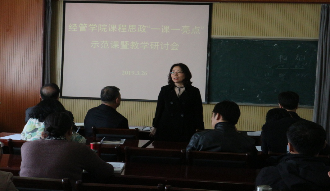 会上,教师张玉、林琳、于龙振和祝晓波分别进行了“一课一亮点”课程思政示范课教学展示。张玉老师在税法课讲述个人所得税纳税人与征税范围的专题时,以影视明星范冰冰偷逃个税为引入案例,强调公民依法纳税的重要性,通过说明国家税收的最终去向,帮助学生理解公民为什么负有纳税义务;林琳老师在系统工程课讲述系统思想的专题时,追溯了中华文明中系统思想的精髓,加深学生对系统思想理解的同时,帮助学生树立对中华文化的自信;于龙振老师在数据库管理课程讲述结构化编程内容时,引导学生思考如何用“if….else”程序结构体现中美俄大国关系的因果走向,通过让学生设计中美俄大国关系的剧情游戏,提升学生编程能力的同时,培育学生的国家意识和社会责任意识,将爱国热情自然的融入到课程教学当中;祝晓波老师在经济学课程中,通过“最后通牒博弈”的微实验,让学生亲身体验博弈行为,帮助学生分析认识只有诚信、公平,友善,才能在合作与博弈中更好的获益,很自然的将社会主义核心价值观教育与经济学理论教学有机的融合在一起。