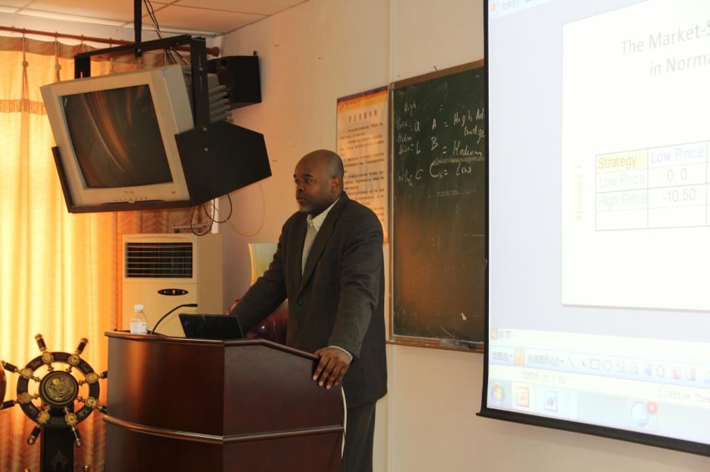 511会议室,温哥华岛大学经济学系主任Rosmy Jean Louis为2012级MBA班做了题为“Game Theory”的讲座。讲座由MBA任课老师袁晓莉教授主持,孙在东教授翻译。