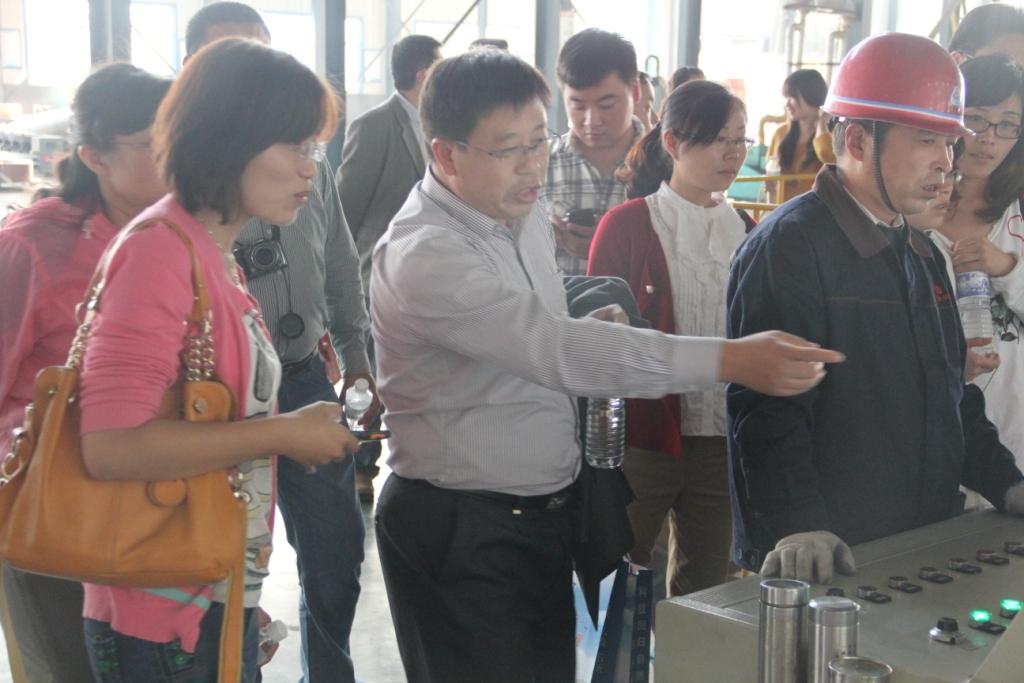 MBA一行抵达平度,青岛宏奥铜管有限公司生产经理,2011级MBA学员腾永桥热情地带领大家参观了铜管生产流程并做了详细的介绍。