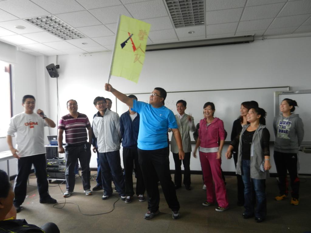 2011级MBA学员组成“亮剑队”、“闪电队”、“雄霸队”和“猎人队”四支队伍,进行激烈角逐。在海尔国际培训中心素质拓展训练师的带领下,全体学员参加了风采展示、绑腿竞速、鼓动人心、兔子舞、发传真、移甜圈、打绳结等多项游戏。
