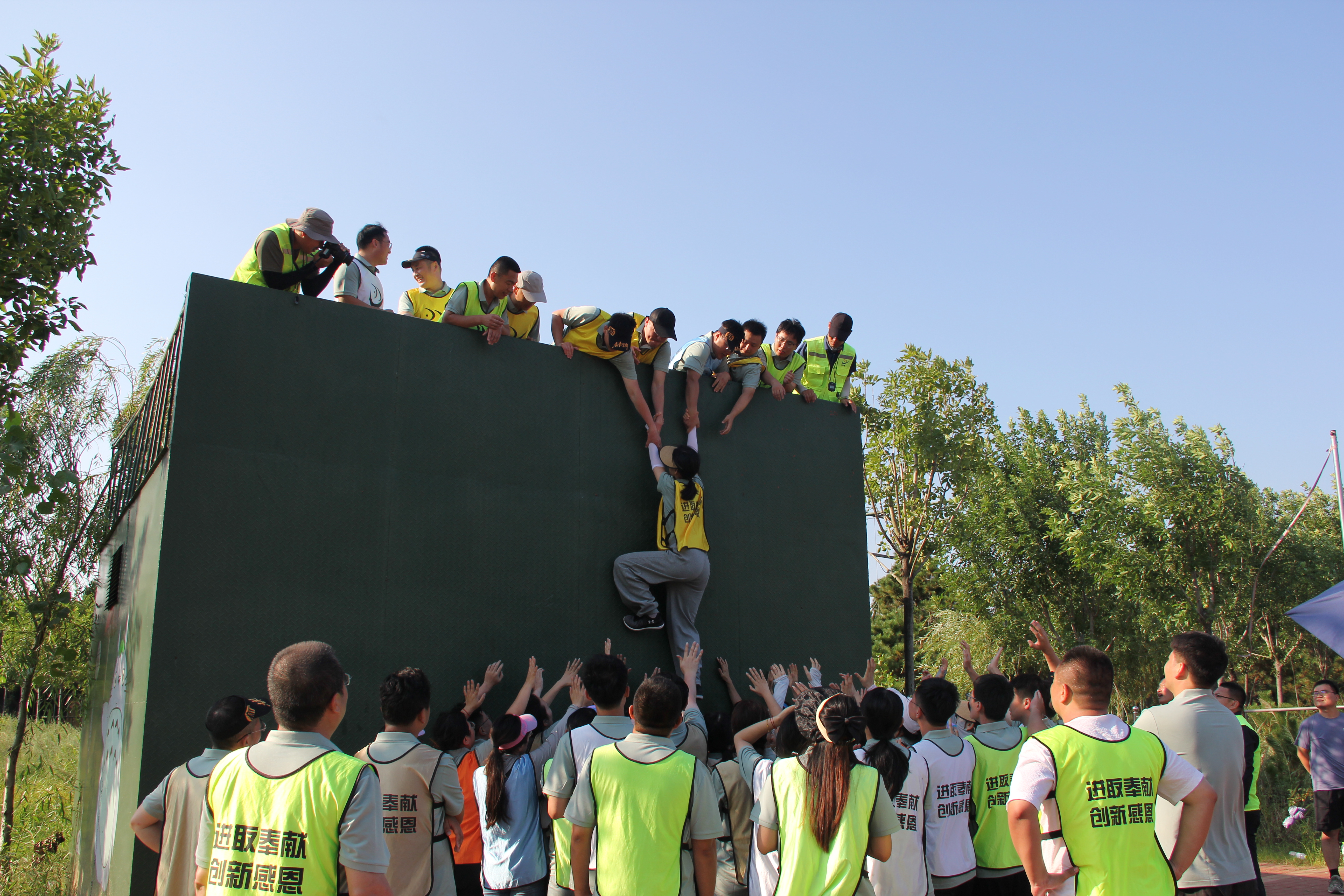 面对高度近5米的终极挑战项目—“毕业墙”,大家没有丝毫畏惧。在挑战过程中,六支队伍团结一心,不畏困难,携手前行,无论是作为稳固的“柱子”,还是搭建起通往成功之路的“梯子”,每个人都深知自己的重要性,并全力以赴地贡献自己的力量。这种高度的团队意识和相互依赖,让团队的力量汇聚成海,最终跨越了看似不可逾越的障碍。在大家的共同努力下,他们提前完成了这个看似不可能完成的任务,证明了只要团结一心、坚持不懈,就没有什么是不可能的。