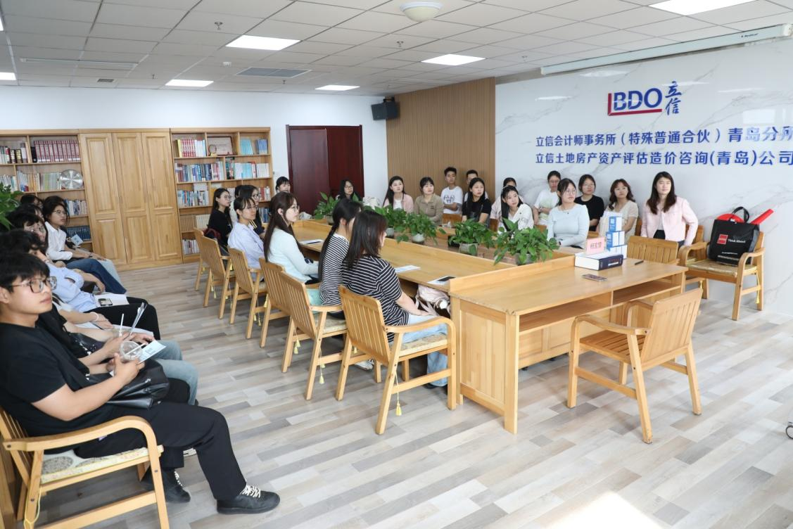 “2025‘唯才唯青岛·惠财辅能’青年财金人才企业游学活动”的最后一站,是走进立信会计师事务所(特殊普通合伙)青岛分所,通过宣传片展映、事务所负责人分享、实地参观及求职指导等环节,全方位展示了事务所的发展历程、业务成就及人才培养体系,也为同学们未来的职业发展打开了一扇新的大门。