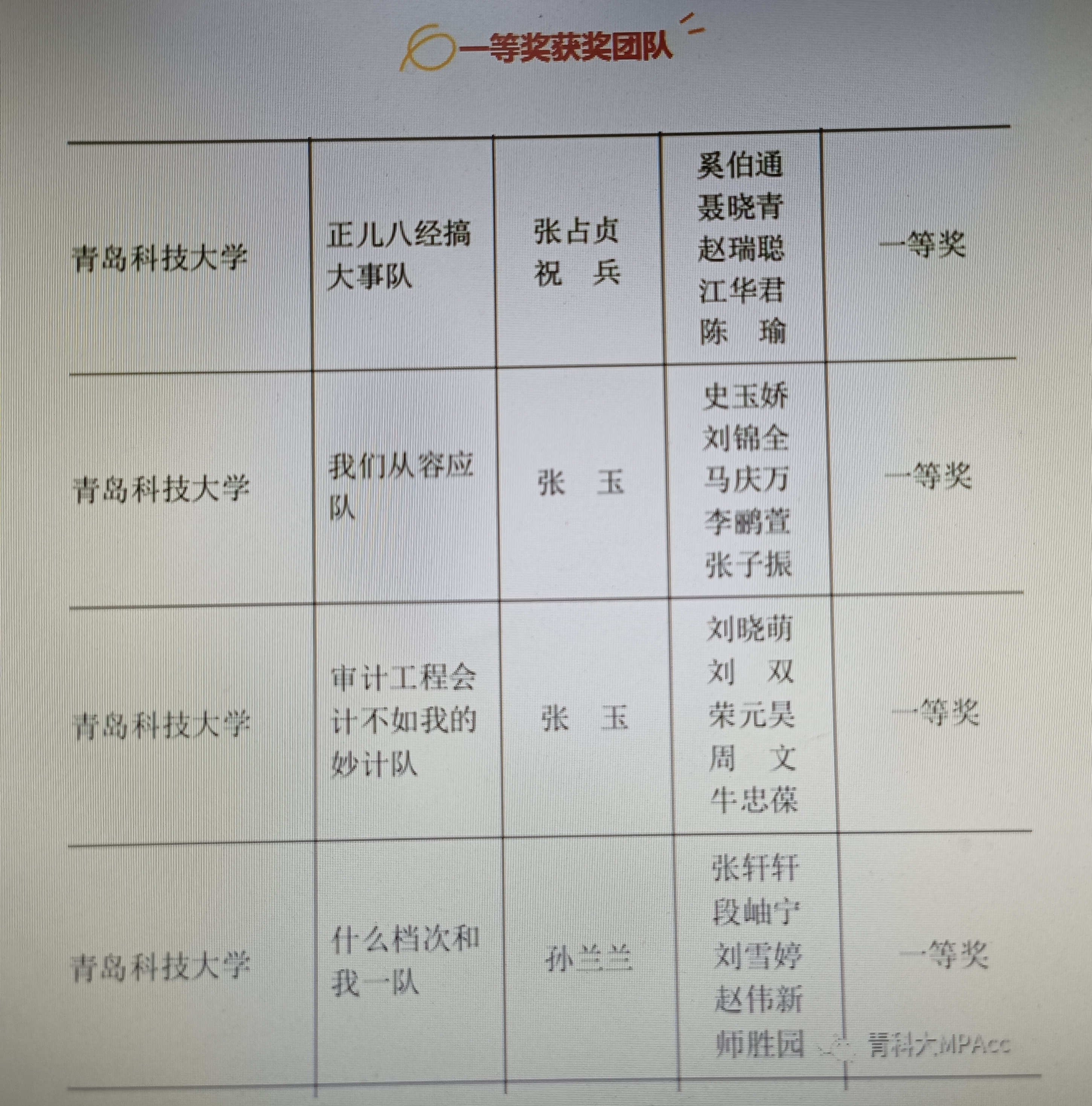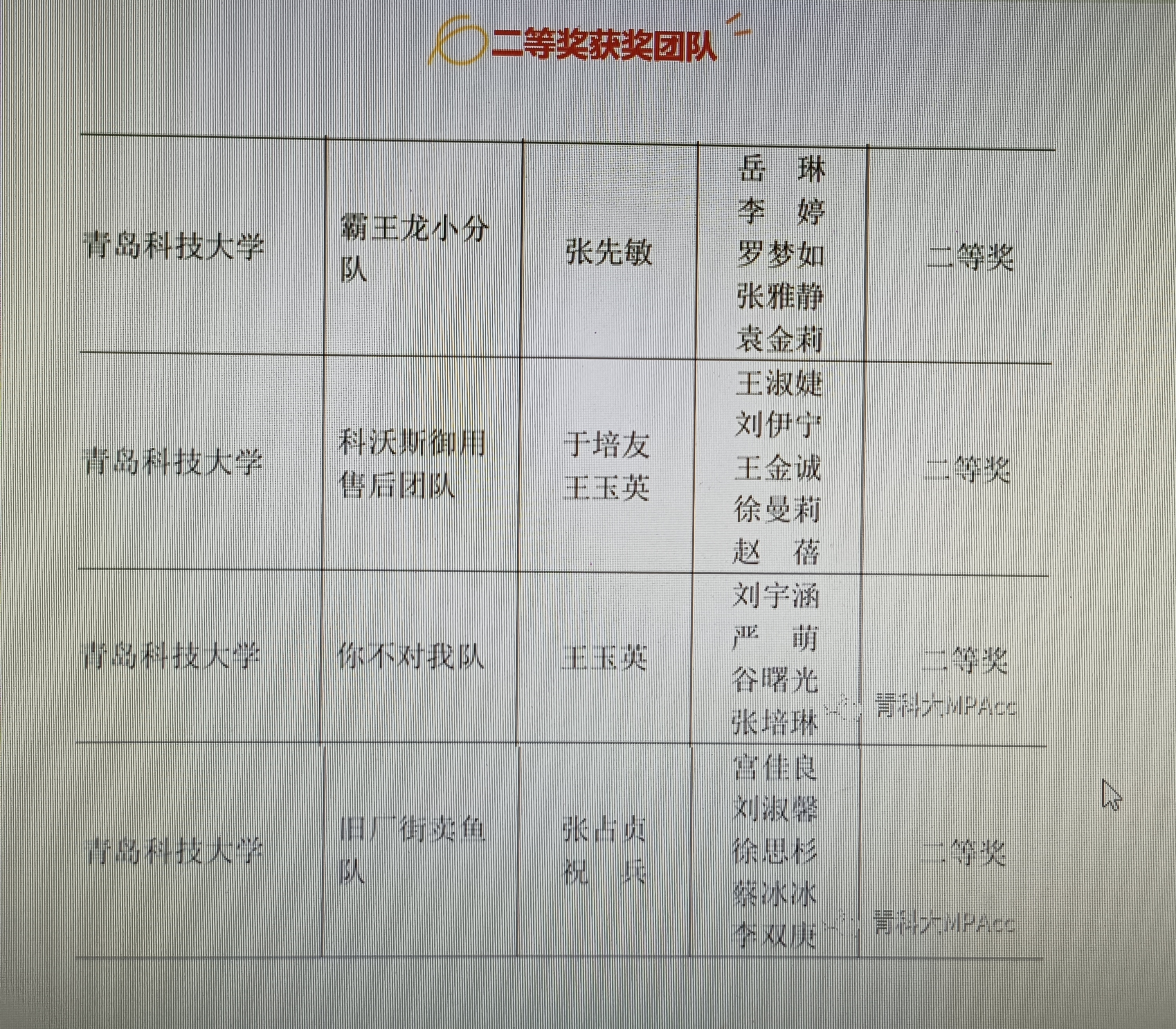 获奖名单