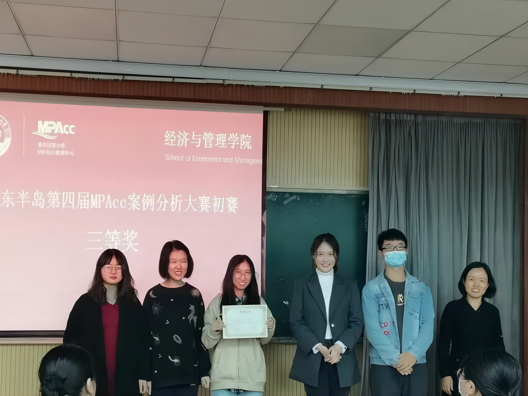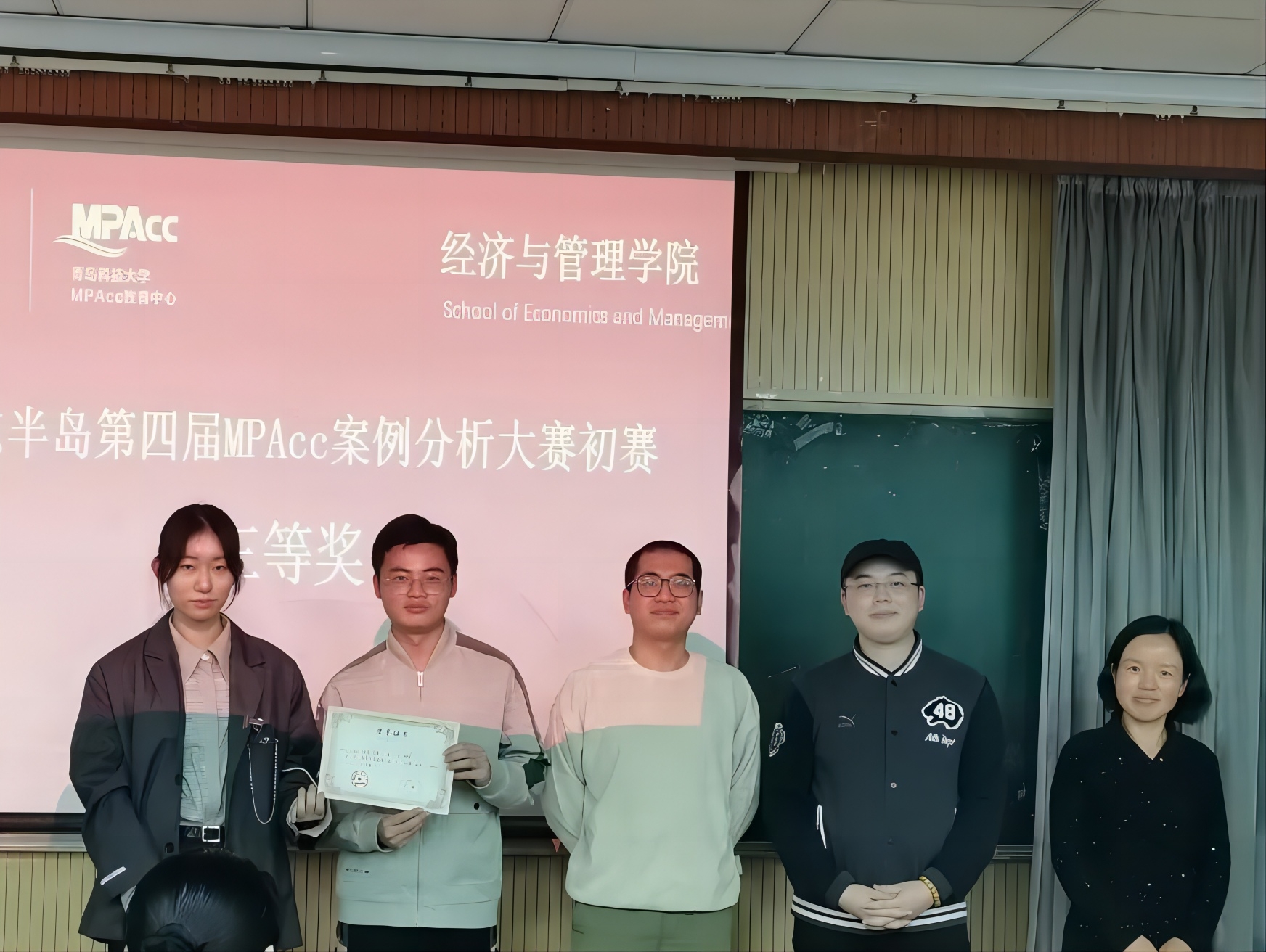 紧接着,由张玉老师、孙兰兰老师、张先敏老师为在山东半岛第四届MPAcc案例大赛初赛中获奖的队伍颁奖。