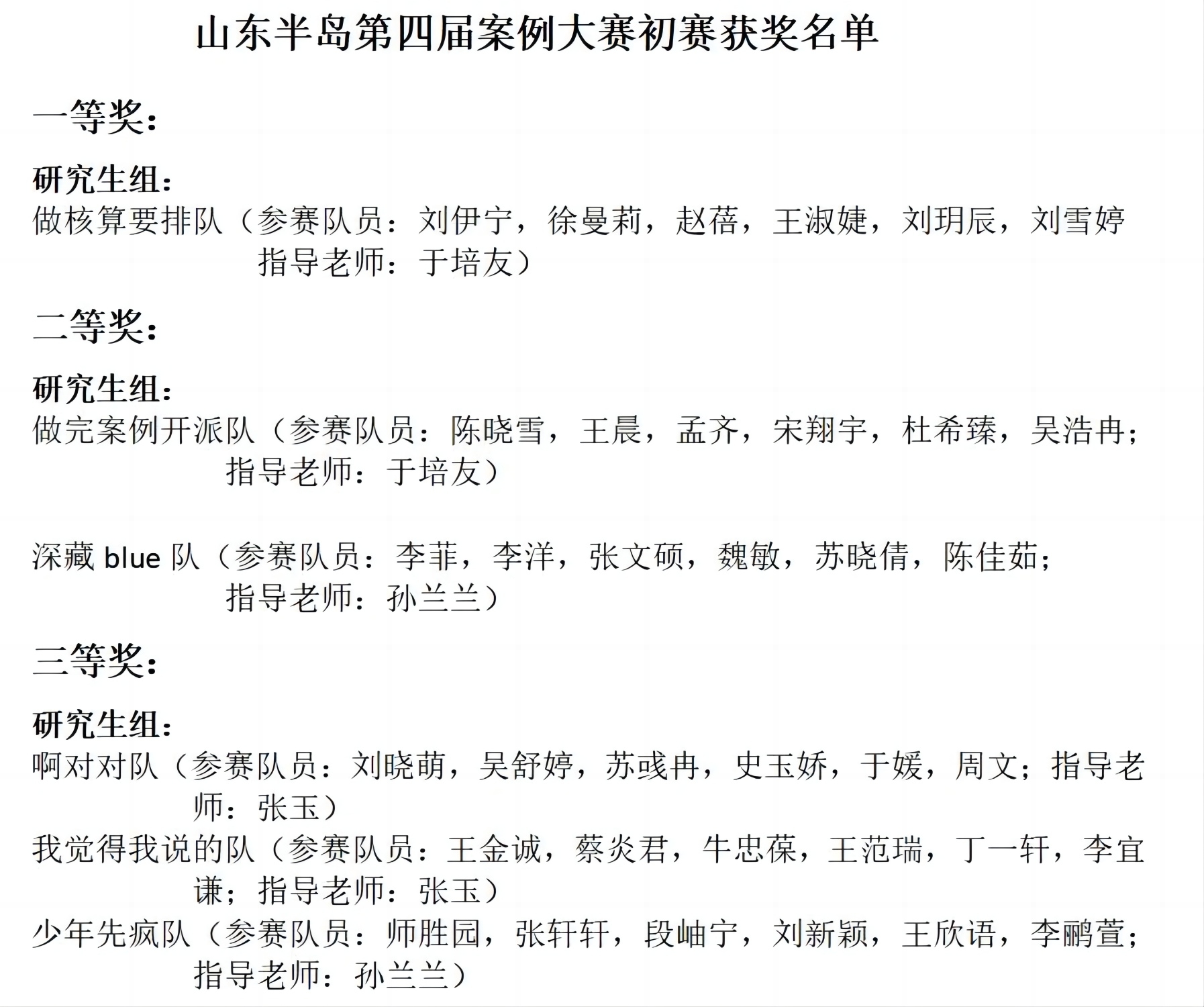 学子在接下来的山东半岛第四届案例分析大赛复赛、决赛中取得优异成绩!