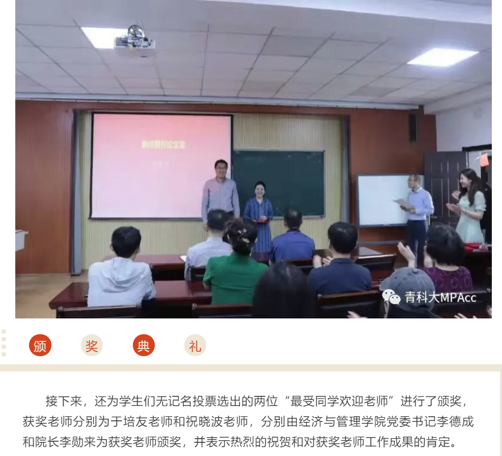 本次颁奖典礼分为两部分 ,第一部分是给2018级毕业生颁发专项荣誉 ,第二部分是给老师颁发最受同学欢迎老师奖。