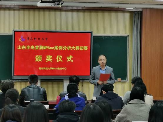 党总支书记李德成书记、副院长吕承超老师和副院长宫攀老师、MPAcc教育中心主任刘树艳教授以及财务与会计系张占贞教授为在山东半岛首届MPAcc案例大赛初赛中获奖的队伍颁奖,其中,获得一等奖的是:6的6次方队、MDZZ队;获得二等奖的有:菜的安详队、发际线总和我作队、我觉得对就队、第六感队、五小金刚队;获得三等奖的是重在参与组、非常5+1队、superego队、创新分析一级团队、帕累托效率队。