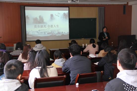 校内导师邵昂珠先生为2018级同学做了题为“莫负韶光、会意人生”的报告。本次报告分别从当今时代环境、职业背景、就业方向、考证规划和时间安排方面进行了详细介绍。