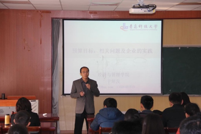 2015年11月28日,于培友老师在经管楼505教室做了题为《预算目标:相关问题及企业的实践》的专题讲座。讲座由会计系王玉英副教授主持,首届MPACC和2015级MBA全体学员聆听了讲座。